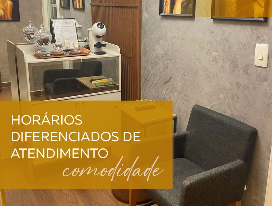 A clínica fica no 2° andar do prédio, possui ambientes climatizados, seguro, confortável e elegante. O diferencial já começa na recepção onde o atendimento é personalizado e humanizado desde o início. Enquanto aguarda, o paciente pode optar em degustar um delicioso café gourmet ou capuccinos especiais, ouvindo uma playlist agradável podendo apreciar belas paisagens em vídeos cuidadosamente selecionados pensando no seu bem estar.